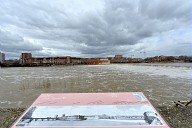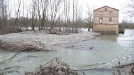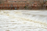 La Garonne en crue à Toulouse entre le pont des Catalans et la chaussée du Bazacle