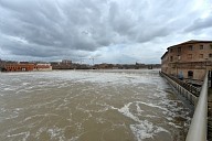 La Garonne en crue à Toulouse entre le pont Saint-Pierre et la chaussée du Bazacle