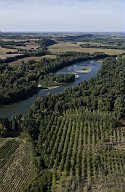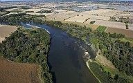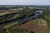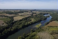 Vue aérienne de la confluence du Lambon et de la Garonne au niveau du méandre de Finhan en Tarn-et-Garonne