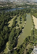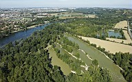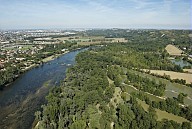 Vue aérienne du Parc du Confluence Garonne-Ariège à Portet-sur-Garonne en Haute-Garonne : ramiers et gravières