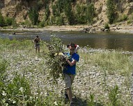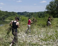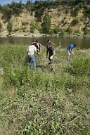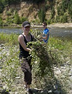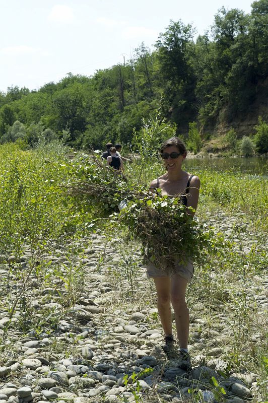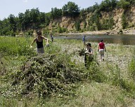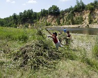 Dévégétalisation d'un atterrissement en berge de la Garonne à Gensac-sur-Garonne par les membres du Sméag