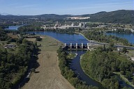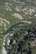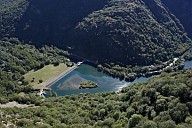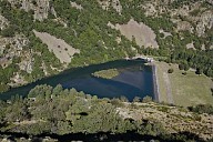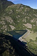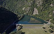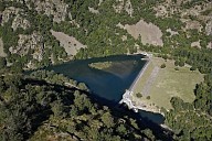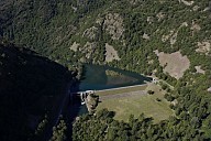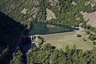 Vue aérienne du barrage de Mancies en amont de Carbonne en Haute-Garonne