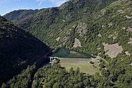 Vue aérienne du lac de retenue du plan d'Arem à Fos en Haute-Garonne