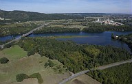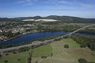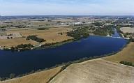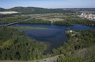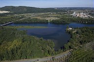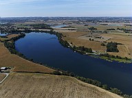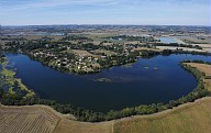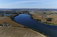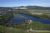 Vue aérienne de la retenue du Mancies en amont de Carbonne en Haute-Garonne