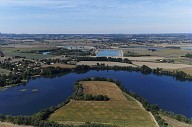 Vue aérienne d'une zone de sédimentation du plan d'eau au lieu-dit Rosès à Boussens en Haute-Garonne