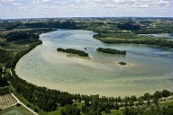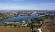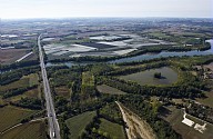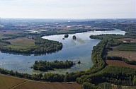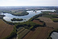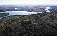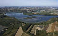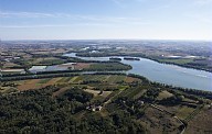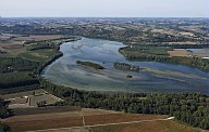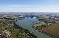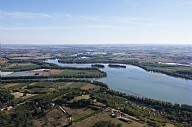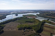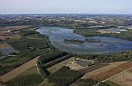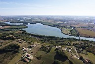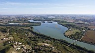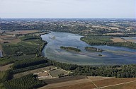 Vue aérienne du plan d'eau de Saint-Nicolas-de-la-Grave et de la plaine agricole en Tarn-et-Garonne
