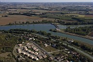 Vue aérienne de la Garonne et de la plaine au niveau de Boudou en Tarn-et-Garonne : canal latéral à la Garonne en rive droite