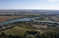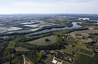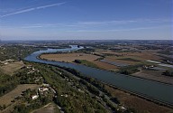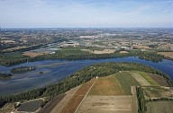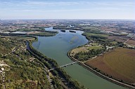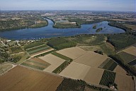 Vue aérienne de la Garonne et de la plaine agricole en amont du plan d'eau de Saint-Nicolas-de-la-Grave en Tarn-et-Garonne