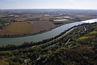 Vue aérienne des vergers en rive gauche du Tarn en aval de Moissac en Tarn-et-Garonne
