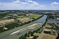 Vue aérienne du seuil de Beauregard et de la Garonne en amont d'Agen en Lot-et-Garonne