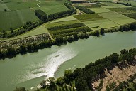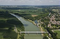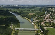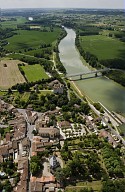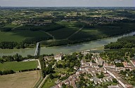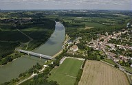 Vue aérienne de la confluence du canal latéral et de la Garonne au niveau de Castets -en-Dorthe en Gironde