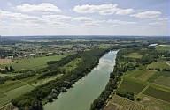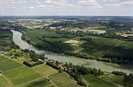 Vue aérienne de la Garonne et de la plaine au niveau de Podensac en Gironde