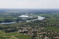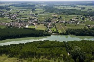 Vue aérienne de la Garonne et de la plaine en aval de Castets-en-Dorthe en Gironde