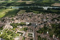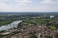 Vue aérienne de la Garonne et de la plaine au niveau de Langon en Gironde