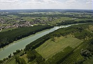 Vue aérienne de la Garonne et de la plaine en amont de Cadillac en Gironde