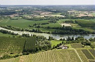 Vue aérienne de la Garonne et de la plaine au niveau de Cadillac en Gironde