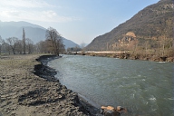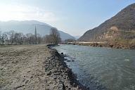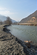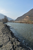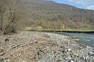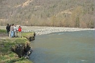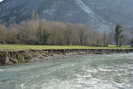 Visite par les représentants des organismes chargés de la gestion du fleuve des sites touchés par la crue de juin 2013 en aval de Saint-Béat en Haute-Garonne : dégradation des berges