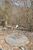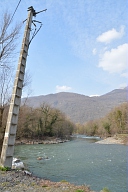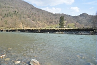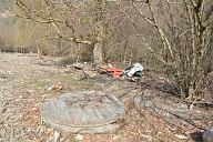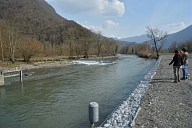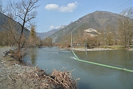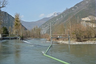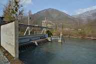 Visite par les représentants des organismes chargés de la gestion du fleuve des sites touchés par la crue de juin 2013 en amont de Saint-Béat en Haute-Garonne : départ du canal d'alimentation de l'usine hydroélectrique