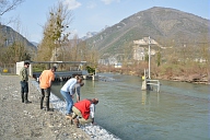Visite par les représentants des organismes chargés de la gestion du fleuve des sites touchés par la crue de juin 2013 en aval de Saint-Béat en Haute-Garonne