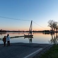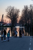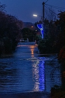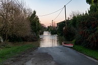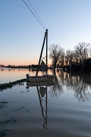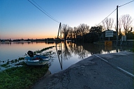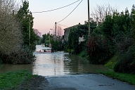 Rue du quartier Saint-Germain inondé en rive gauche de la Garonne face à Tonneins en Lot-et-Garonne pendant la crue de la Garonne -12 janvier 2022
