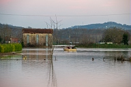 Canoë pour le transport de personnes dans le quartier Saint-Germain en rive gauche de la Garonne face à Tonneins en Lot-et-Garonne pendant la crue de la Garonne -12 janvier 2022