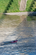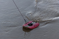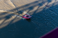 Mesure du débit de la Garonne en crue depuis le pont de La Réole en Gironde ,crue du 12 janvier 2022