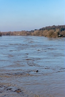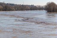 La Garonne en crue depuis la rive gauche face à La Réole en Gironde , crue du 12 janvier 2022