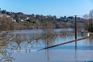 Zone inondée au niveau du pont de La Réole en Gironde , crue du 12 janvier 2022