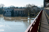 Zone urbaine inondée au niveau du pont de La Réole en Gironde , crue du 12 janvier 2022