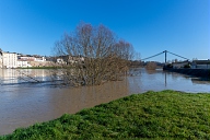 Pile du pont suspendu de La Réole en Gironde , crue du 12 janvier 2022