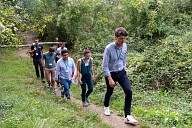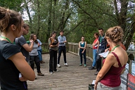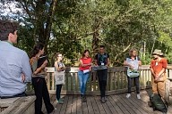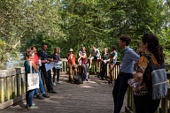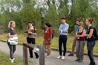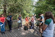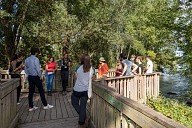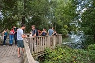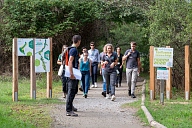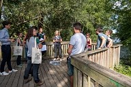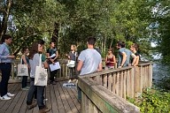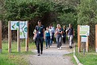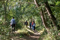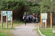 Déplacement des participants sur les sentiers aménagés de la Réserve Naturelle Régionale de la Confluence Garonne-Ariège au Vernet en Haute-Garonne