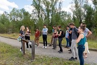 Colloque ANEB/SMEAG ,présentation aux participants des panneaux pédagogiques répartis dans la Réserve Naturelle Régionale Confluence Garonne-Ariège en bord d'Ariège au Vernet en Haute-Garonne