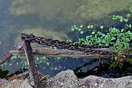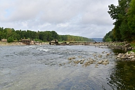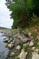 Tronc d'arbre déposé par une crue en amont des vestiges du Seuil de Beauregard entre Boé et Agen en Lot-et-Garonne