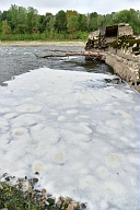 Mousse issue d'un rejet en Garonne au niveau du Seuil de Beauregard en amont d'Agen en Lot-et-Garonne