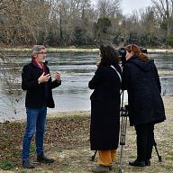 Interview de jean-Michel Fabre , président du SMEAG sur le site du parc de la confluence Garonne Ariège à Portet-sur-Garonne en Haute-Garonne - 6 mars 2023