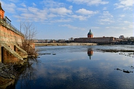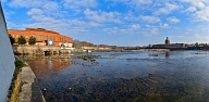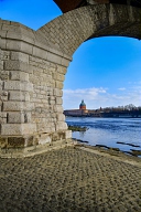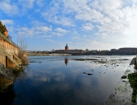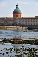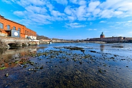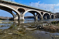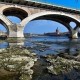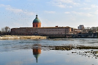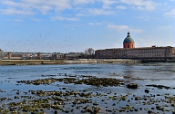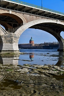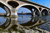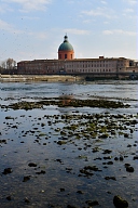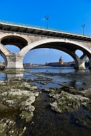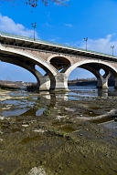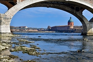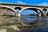 Etiage hivernal de la Garonne au niveau du pont des Catalans et du Bazacle à Toulouse en Haute-Garonne - 6 mars 2023