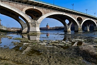 La Garonne en étiage hivernal inquiétant au niveau du pont des Catalans et du Bazacle à Toulouse en Haute-Garonne - 6 mars 2023