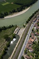 Vue aérienne de la Garonne et de la plaine au niveau de la confluence avec le Lot à Aiguillon en Lot-et-Garonne : écluse de Nicole