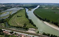 Vue aérienne de la Garonne et de la plaine au niveau de la confluence avec le Lot à Aiguillon en Lot-et-Garonne