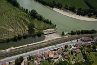 Vue aérienne de l'écluse de la confluence de la Garonne et du Lot à Nicole en Lot-et-Garonne